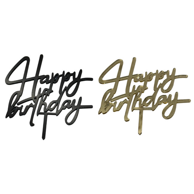 PLEXIGLASS HAPPY BIRTHDAY CAKE TOPPER 12CM