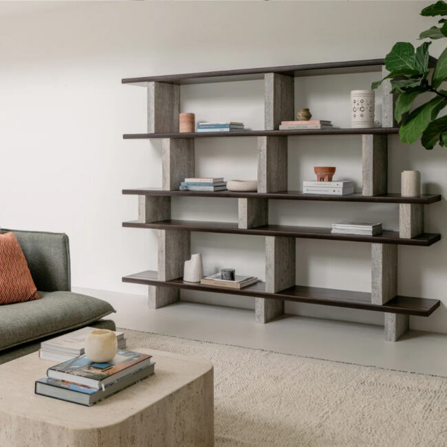 MERPINS BOOKSHELF 240X35X181CM GREY TRAVERTINE SMOKE WOOD