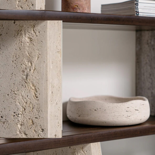 MERPINS RACK 240X35X181CM WHITE TRAVERTINE OIL WALNUT WOOD