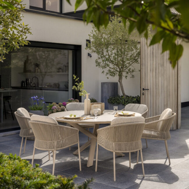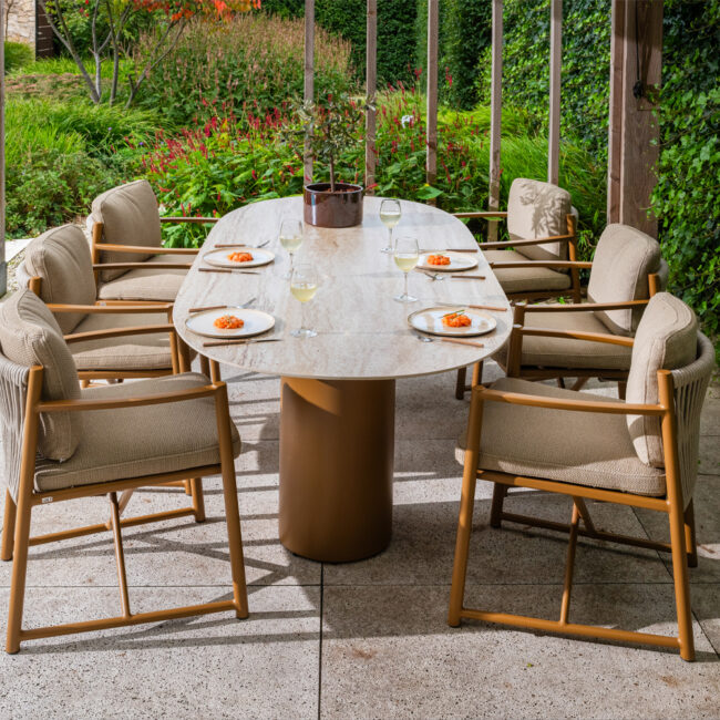 PRADO CERAMIC DINING TABLE BARREL LATTE 240X105CM