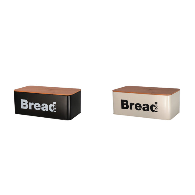 METAL BREAD HOLDER BOX WITH BAMBOO LID ASSORTED 33X18XH12CM