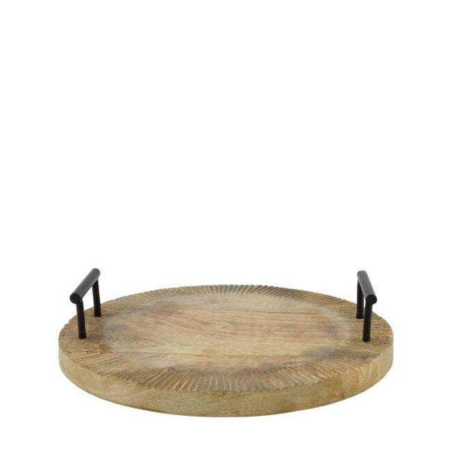 TRAY ROUND WITH METAL HANDLE MANGO WOOD NATURAL