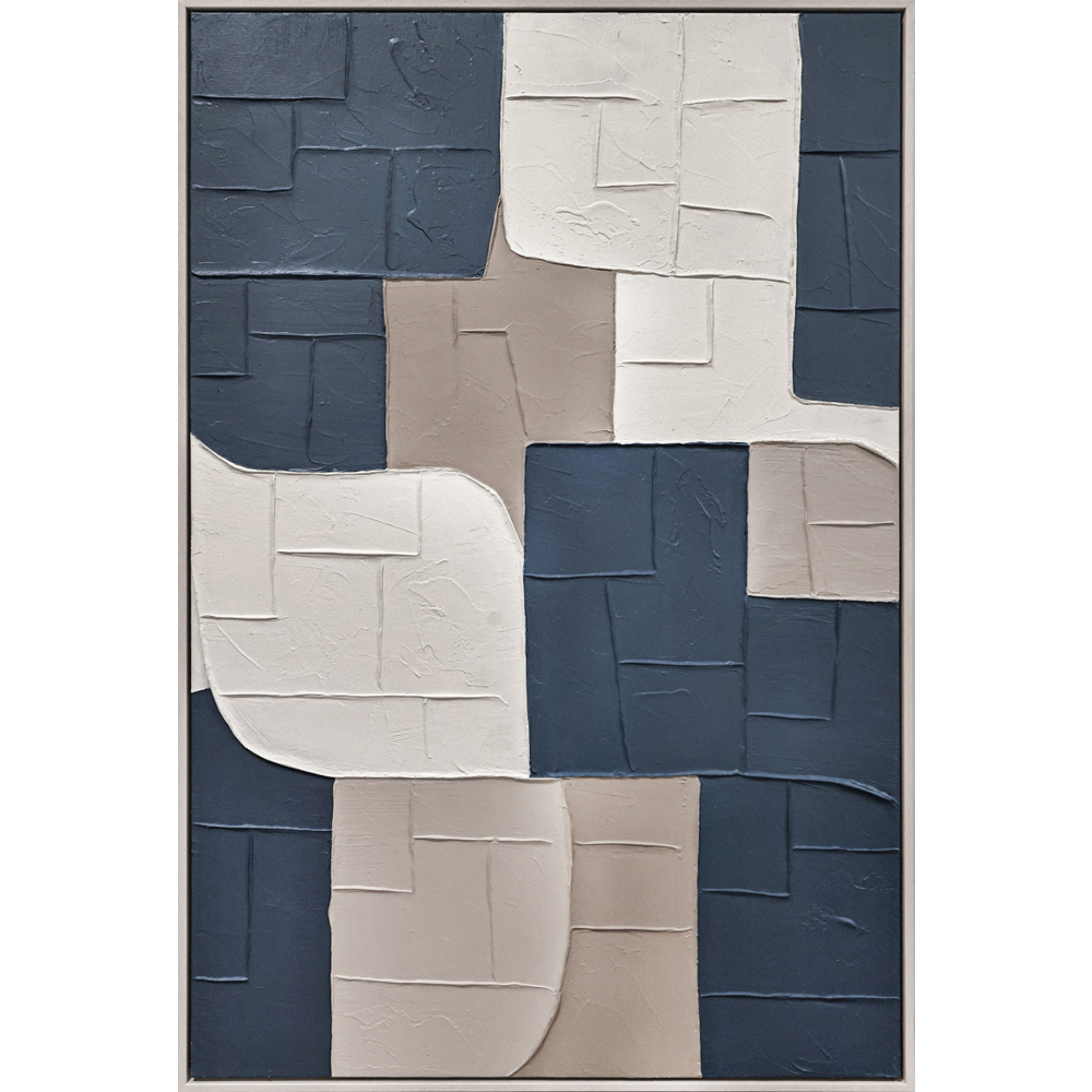 3D WALL DECORATION OIL PAINT WITH FRAME BLUE SHAPES 83X123CM