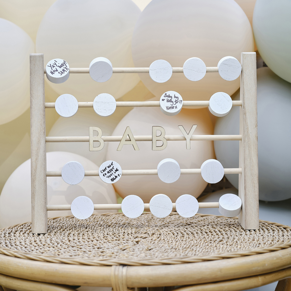 This wooden abacus baby shower guest book is the perfect addition for your baby shower celebrations. It’s unique design will make it a keepsake to treasure and will look gorgeous in the nursery after your little one has made their arrival. Plus, it will look incredible displayed within any theme and will make the perfect gift.