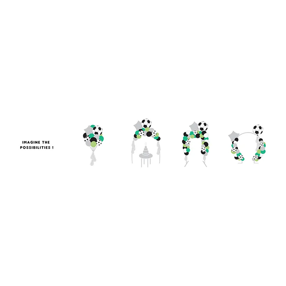 Balloon garland Football, mix of colours, set contains: balloons (48 pcs), foil balloons (2 pcs), garland (1 piece), paper straw (1 piece), foam tape (30 pcs), modeling balloons (2 pcs) and 2.5 m of balloon garland tape. Size approx. 150 x 126 cm. Manual included.