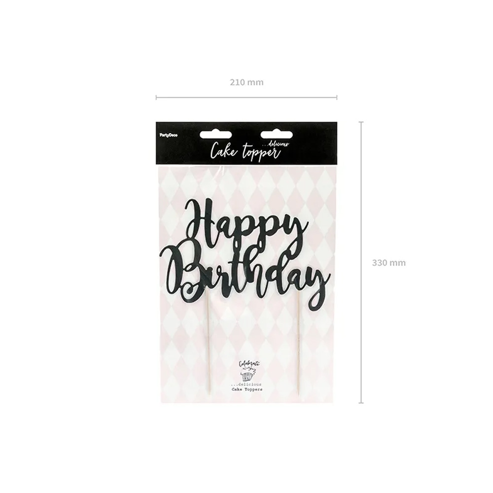 CAKE TOPPER HAPPY BIRTHDAY BLACK 22.5CM