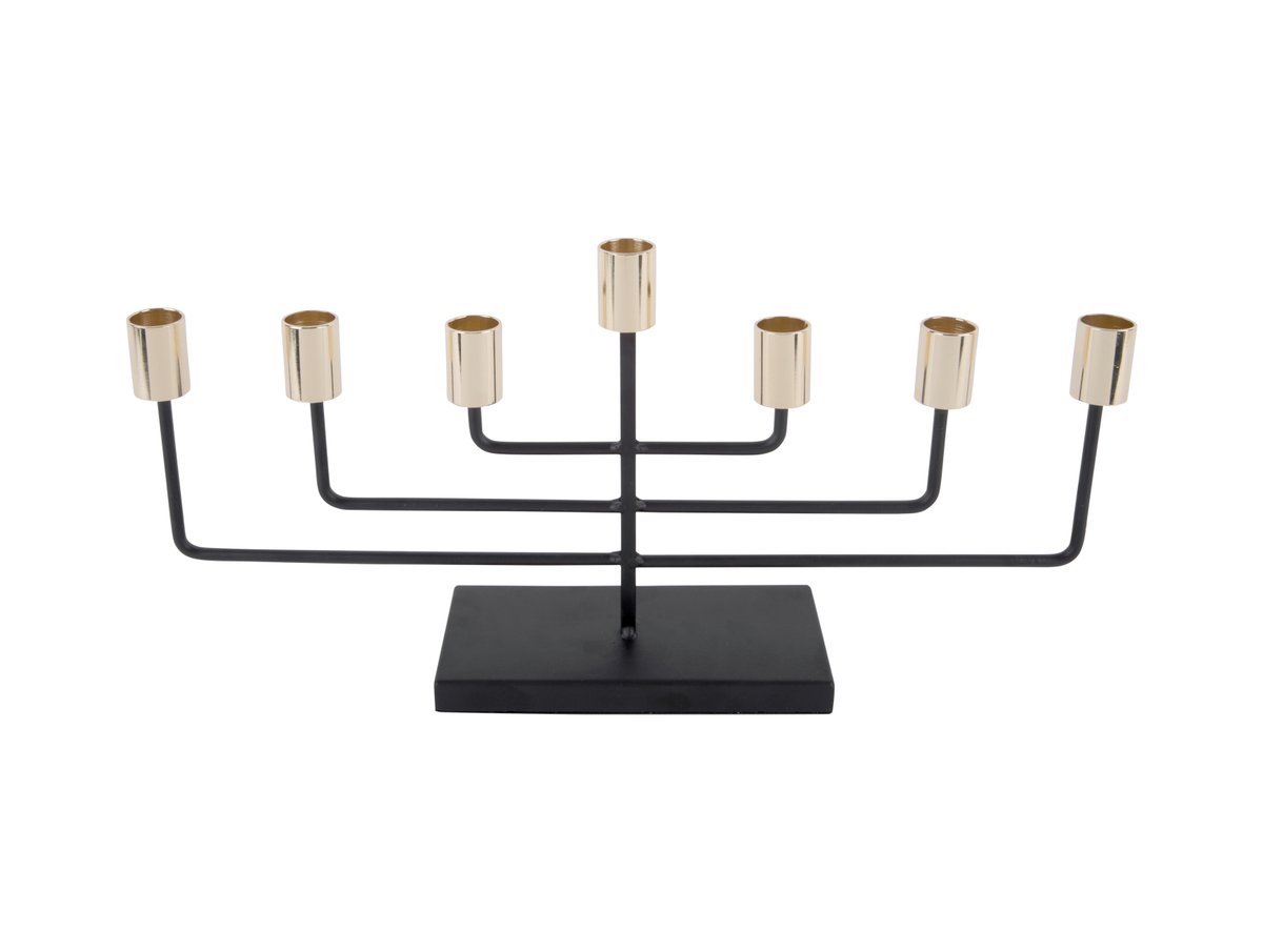 Say yes to candlelight at every dinner. Candle holder Traditional, offers space to 7 candles. The candle holder has a traditional design in black with gold and is made of iron. The slender shape makes this candle holder a modern item.