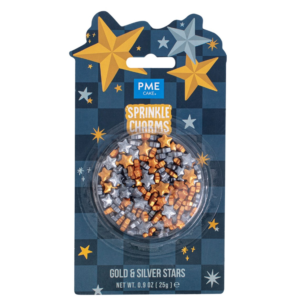 CHRISTMAS STAR SPRINKLE CHARMS GOLD & SILVER 25G