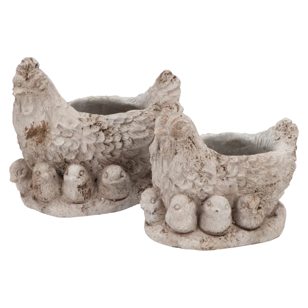 CONCRETE PLANTER FARM CHICKEN FAMILY GREY