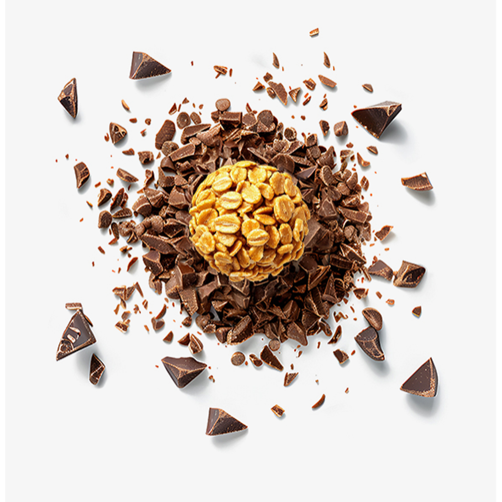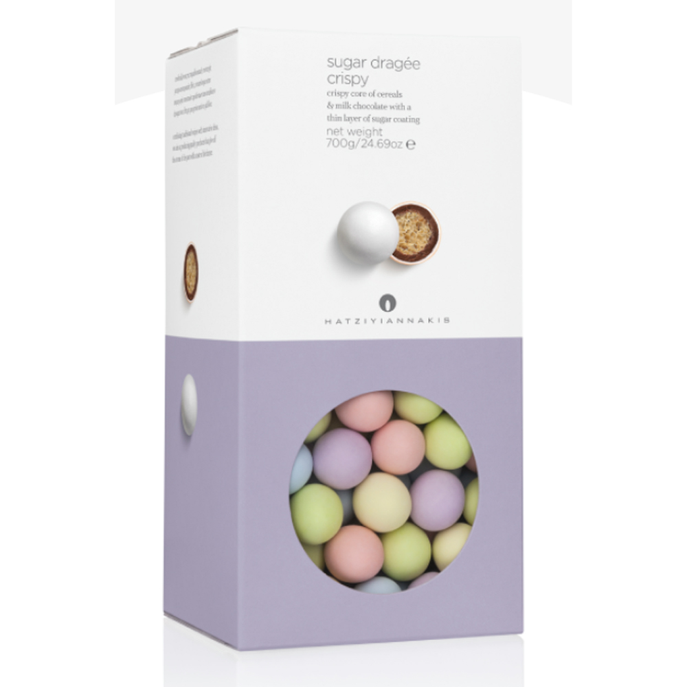 Τραγανός πυρήνας από δημητριακά & σοκολάτα γάλακτος με λεπτή επικάλυψη ζάχαρης.