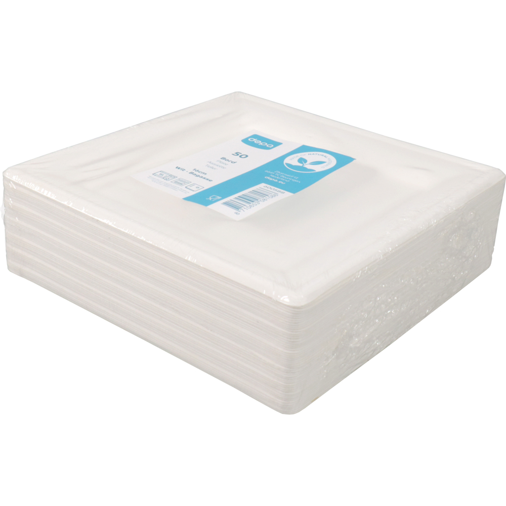 DEPA PLATE SQUARE SUGARCANE WHITE 50PCS