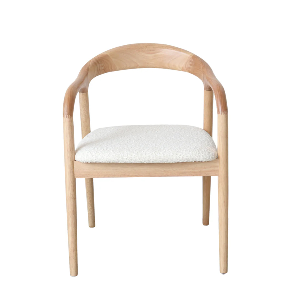 Take dining at home to the next level with the Muret dining room chair. This wooden dining room chair has an elegant look thanks to its free shapes. Dining for hours? That is no problem at all thanks to the bouclé seat, which allows you to sit comfortably. The Muret is also a dining room chair with armrests, which provides extra comfort. Thanks to the use of the teddy fabric and light oak wood, the chair has a modern and sleek look.