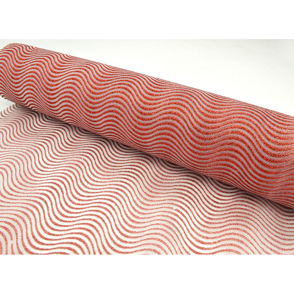 FABRIC WAVY GLITTER WHITE-RED 48CMX9M