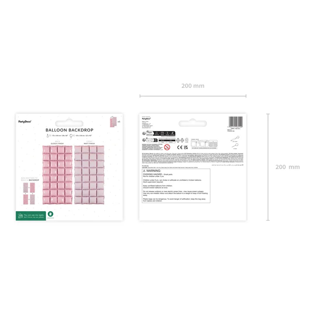 Rectangular foil balloon backdrop – double-sided, one side with a matte pink finish and the other with matte pink. Dimensions before inflation are approximately 72 x 143 cm, and after inflation 55 x 110 cm. The set includes a straw. Installation: To inflate the balloon with air, use the included straw or a hand pump. There is a strip of foil around the balloon that does not fill with air during inflation, allowing you to connect the balloons or attach them to smooth surfaces. For installation, we recommend using adhesive dots. Installation instructions are available in a video below the product photo. All rectangular foil curtain balloons available are the same size, allowing for easy combination.