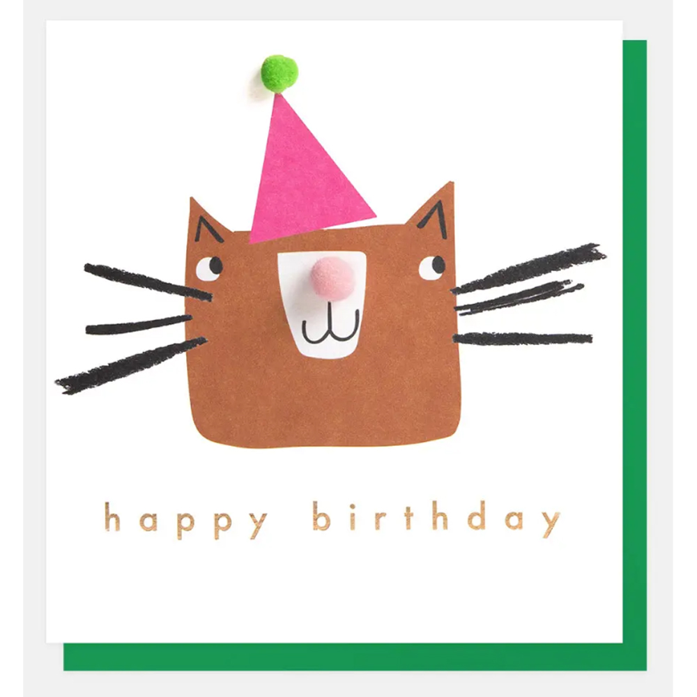 Due to the success of our other pom card ranges, we’ve now launched these fun children’s cards with sweet animal characters that are finished with lots of colourful pom poms, paired with a striking green envelope.
