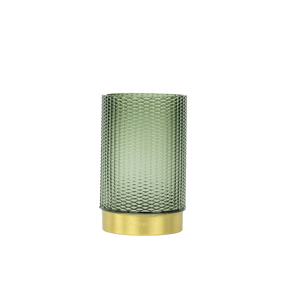 This Bombyxx vase (S: 20X12 cm) was produced in three different stages (blowing, cutting and polishing). In various unique and complex steps the thick and heavy glass is shaped and finished by hand. Thus, each vase gets its own unique structure. Each vase a masterpiece of craftsmanship.