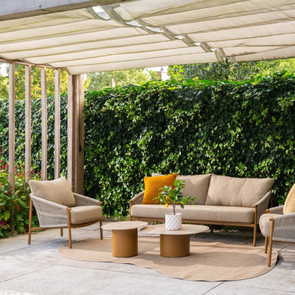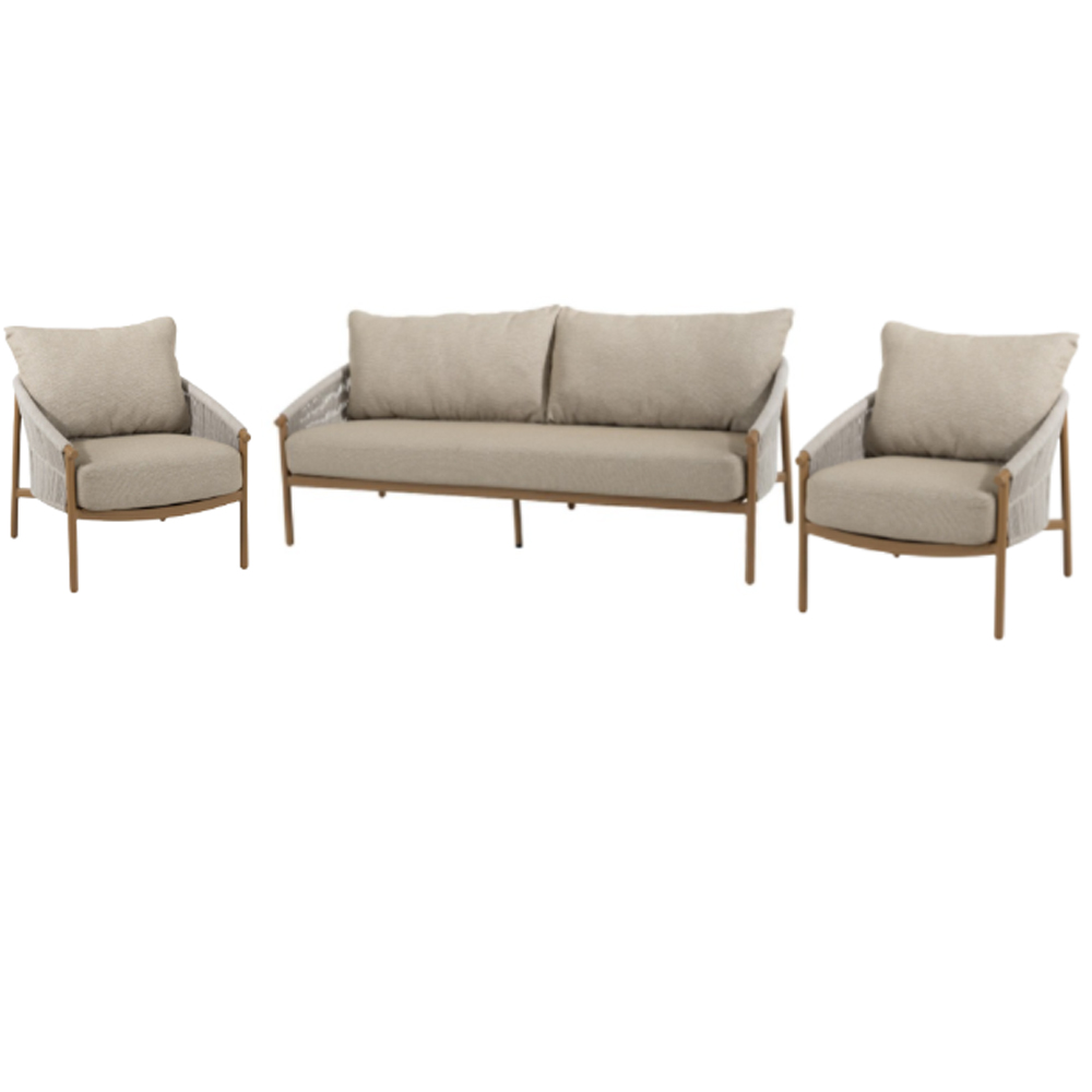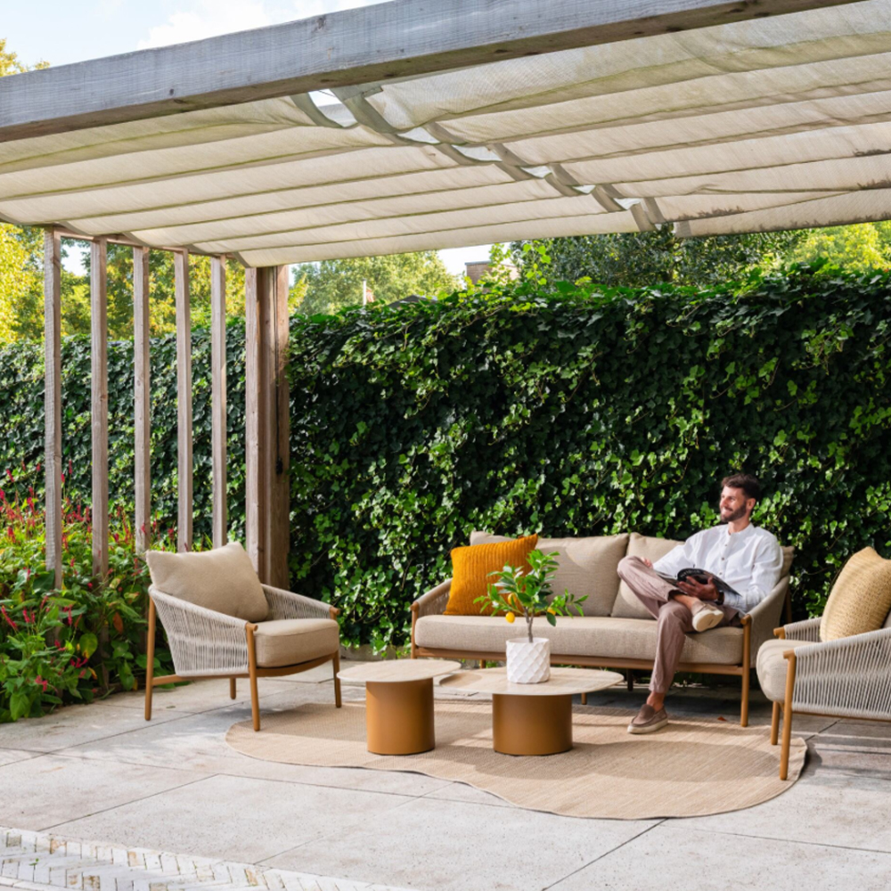 The eye-catching rope pattern together with the matching cushions create a modern, luxurious look. The unique cushion fastening adds a unique finishing touch, ensuring both style and practicality for your outdoor moments.