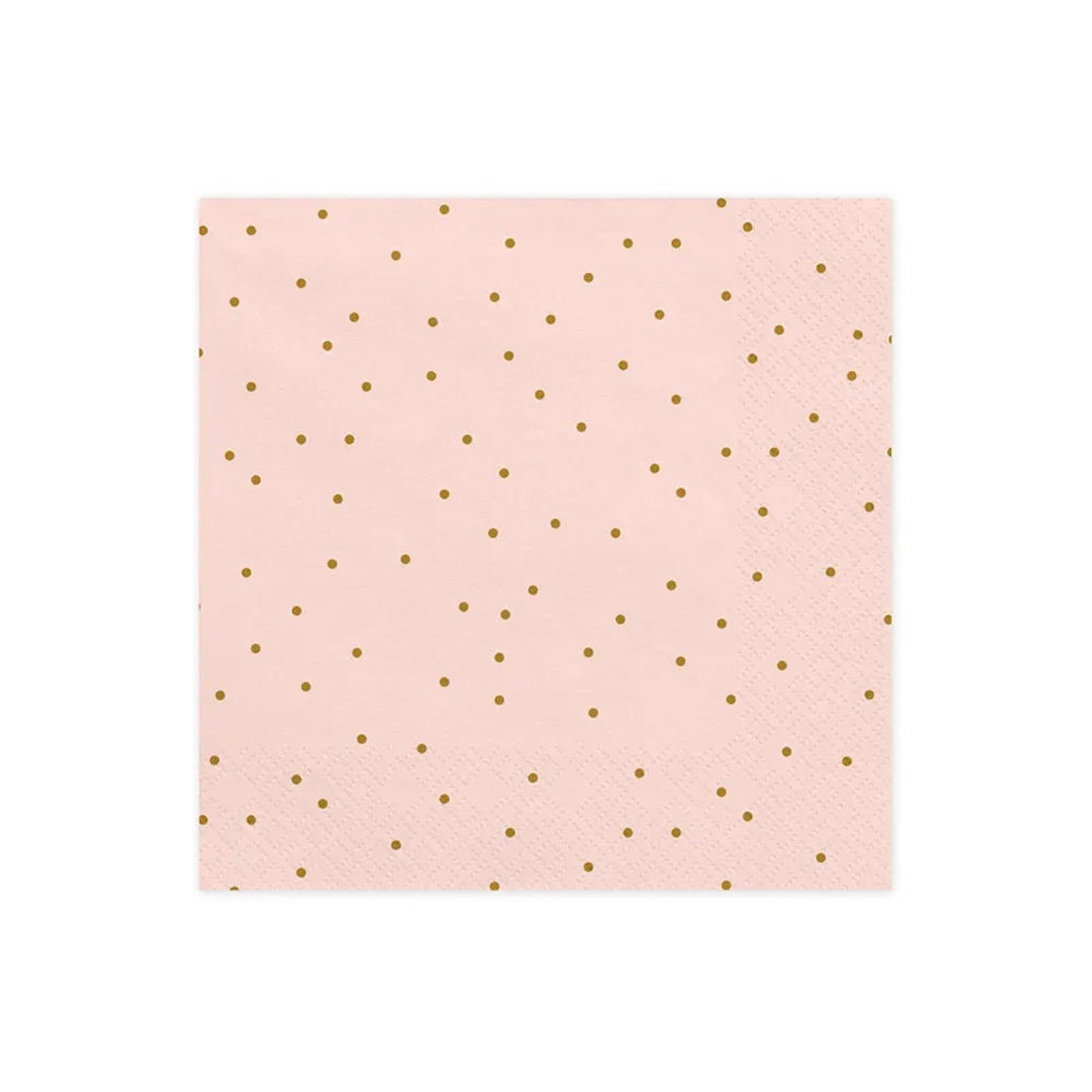 3-layer napkins Dots, light pink with gold print, size 33 x 33 cm.