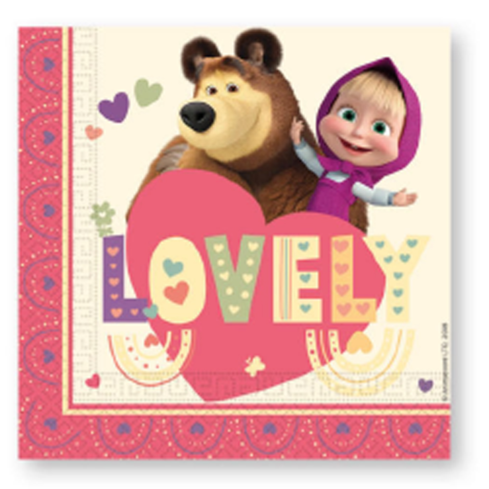 PAPER NAPKINS 2PLY MASHA SWEET HEART 33X33CM 20PCS