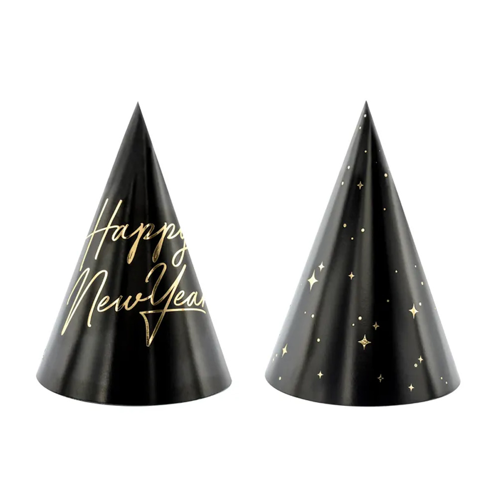 PARTY HATS HAPPY NEW YEAR 16CM 6PCS