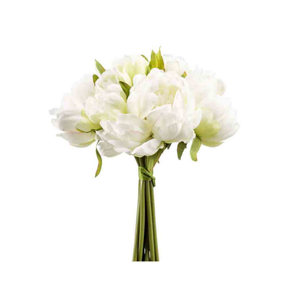 PEONY FLOWER BUNDLE WHITE/GREEN 24CM