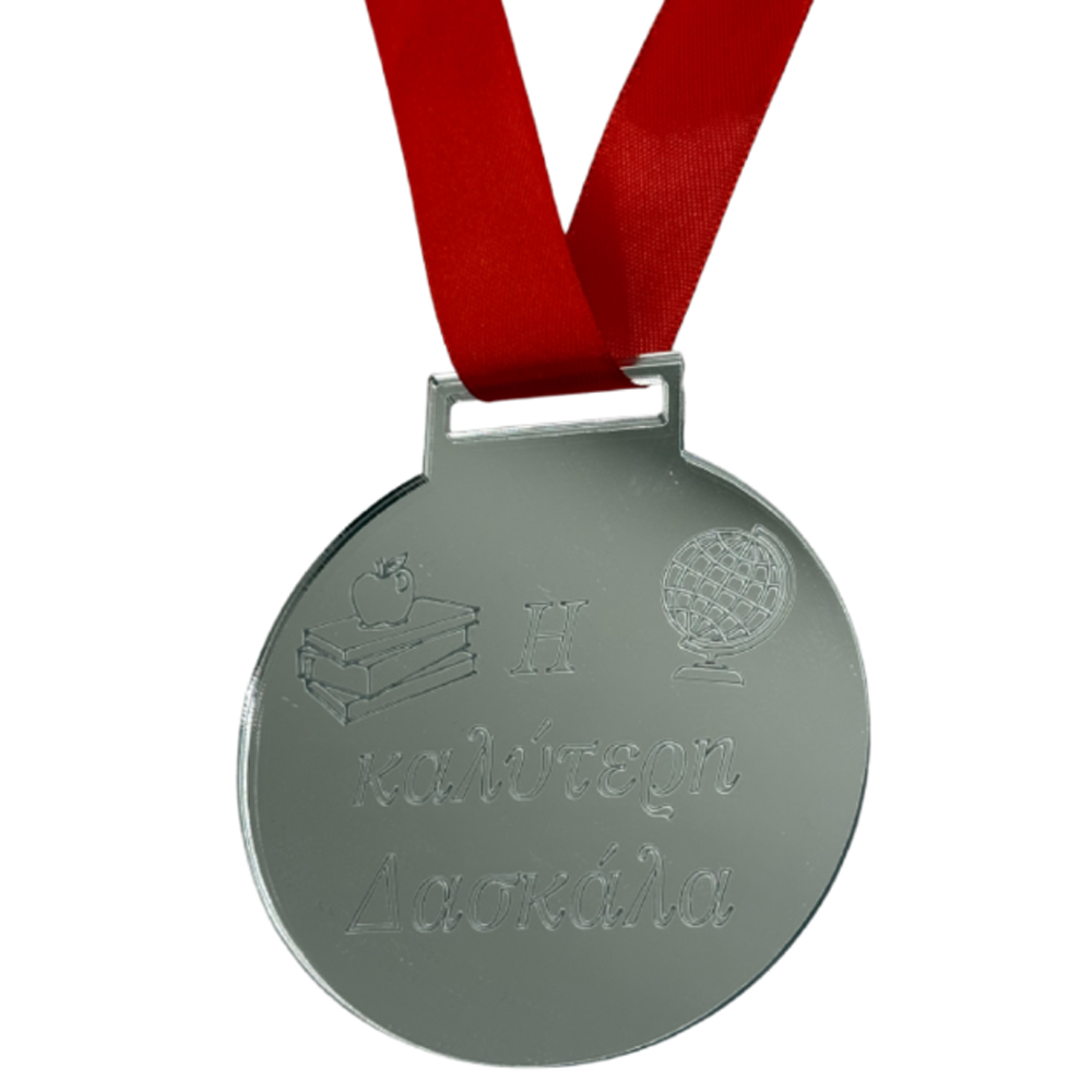 PLEXIGLASS AWARD “I KALYTERI DASKALA” ROUND SILVER 10CM