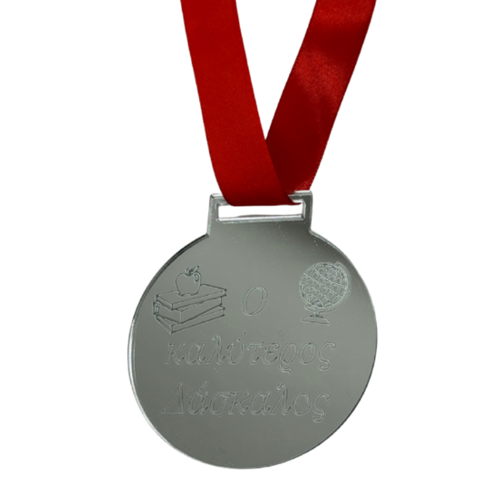 PLEXIGLASS AWARD “O KALYTEROS DASKALOS” ROUND SILVER 10CM
