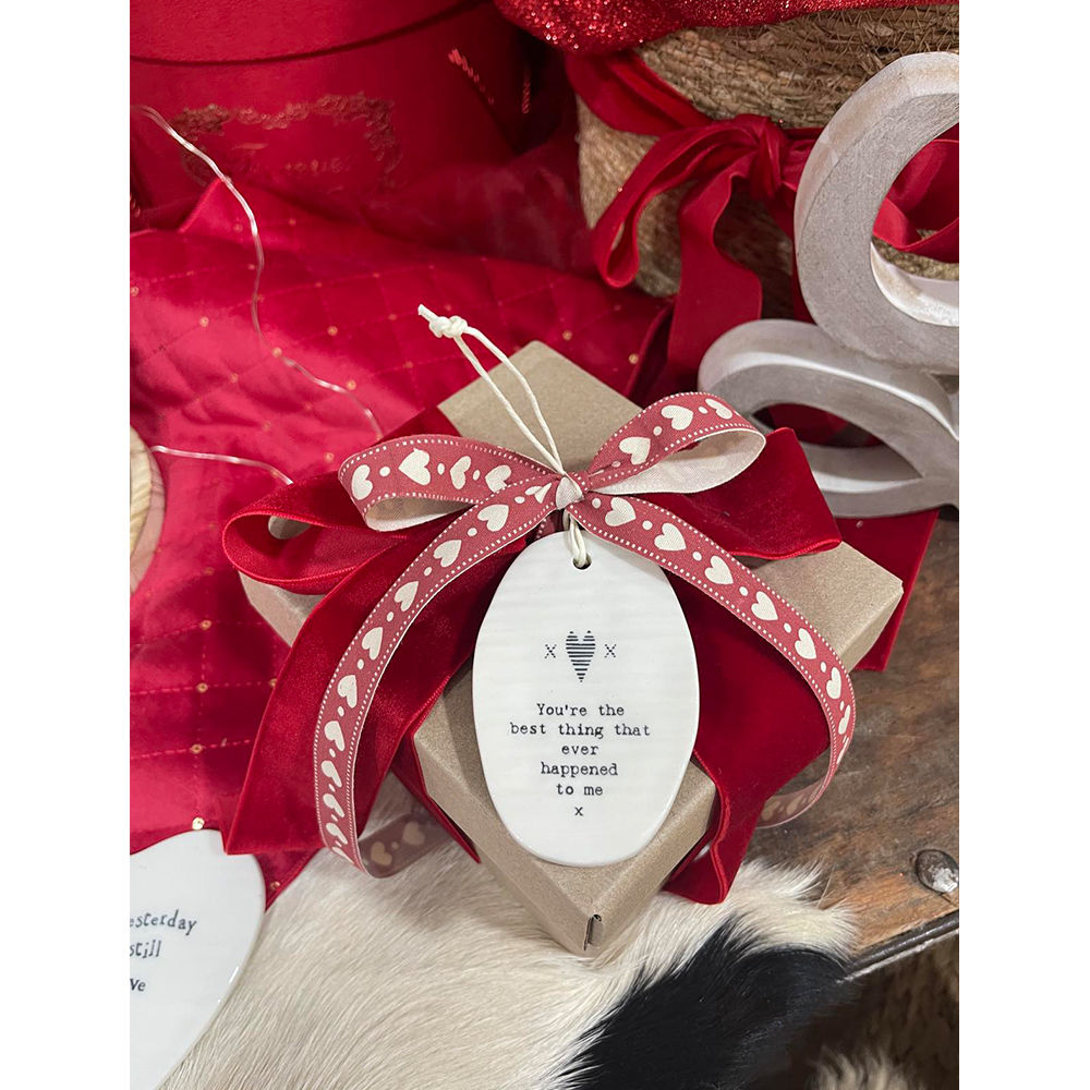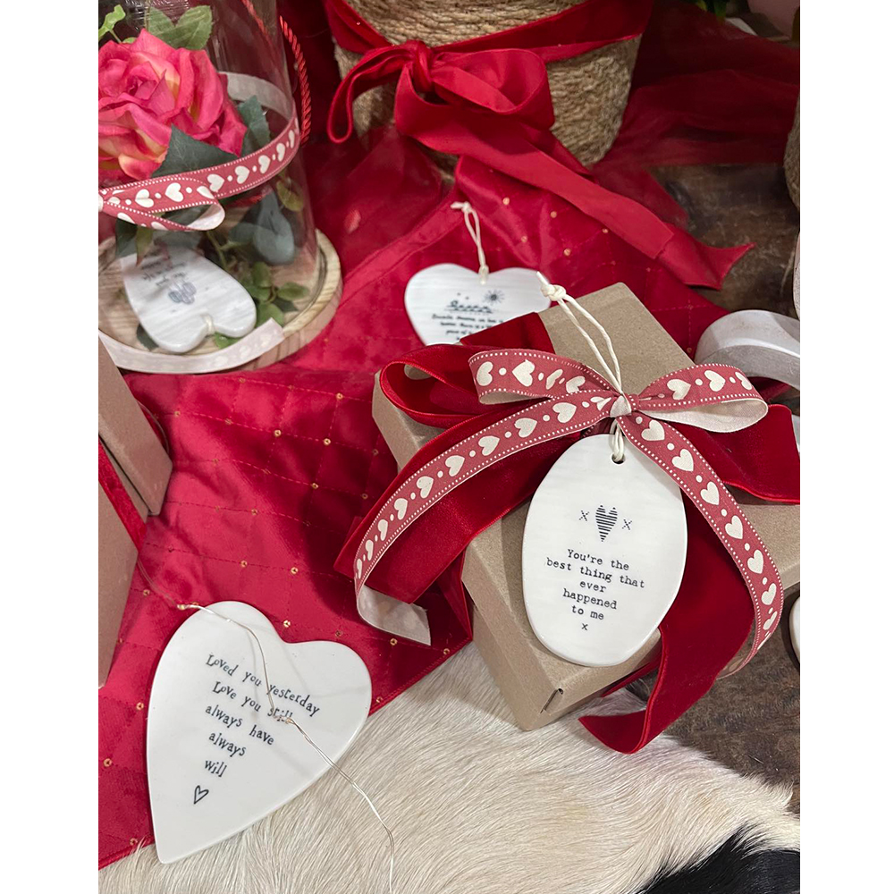 PORCELAIN HANGER HEART & KISSES ‘BEST THING’ 5.5X8X0.5CM