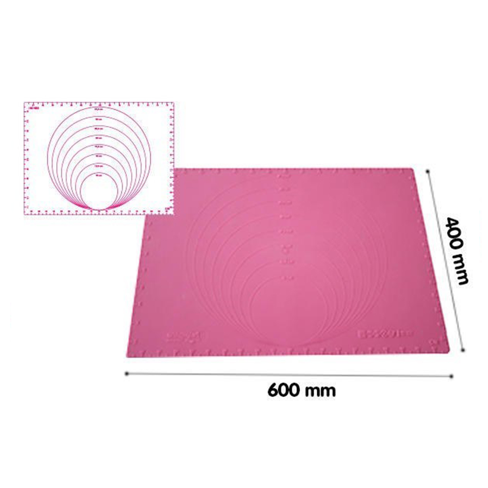 Silicone mat with circles in relief and lateral measurements expressed in centimeters and inches, perfect to stretch out and cut with precision sugar paste and any kind of modelling paste.