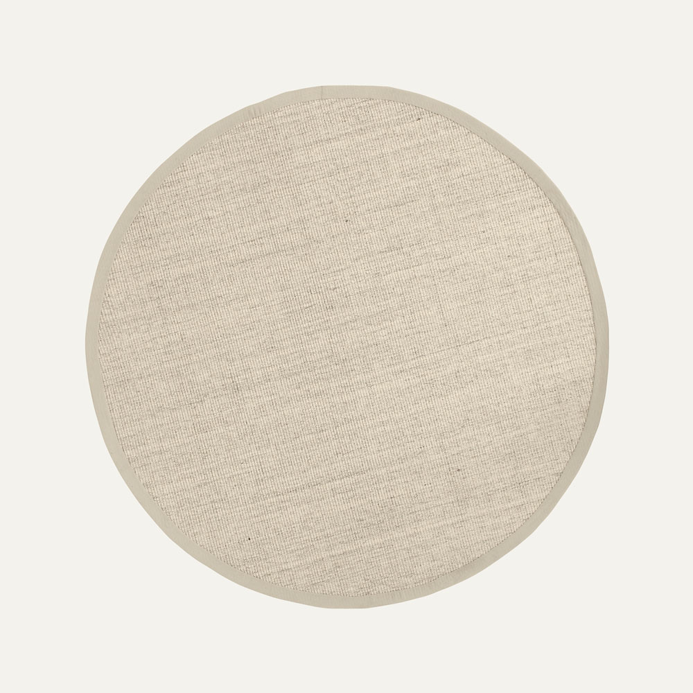 Durable machine-woven round rug of sisal with beige cotton edge. In order for the rug to lie nicely on the floor, the underside is coated with natural latex. Certified according to OEKO-TEX STANDARD 100.