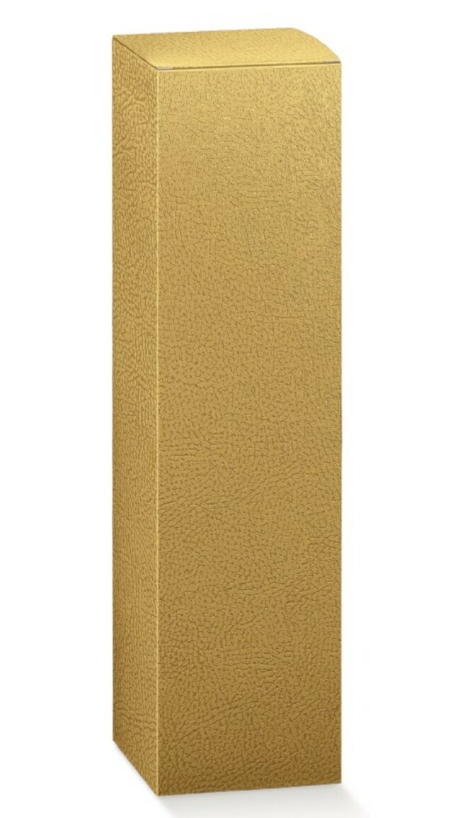 Cardboard box coupled to pack 1 vertical bottle, in Gold Leather colour.