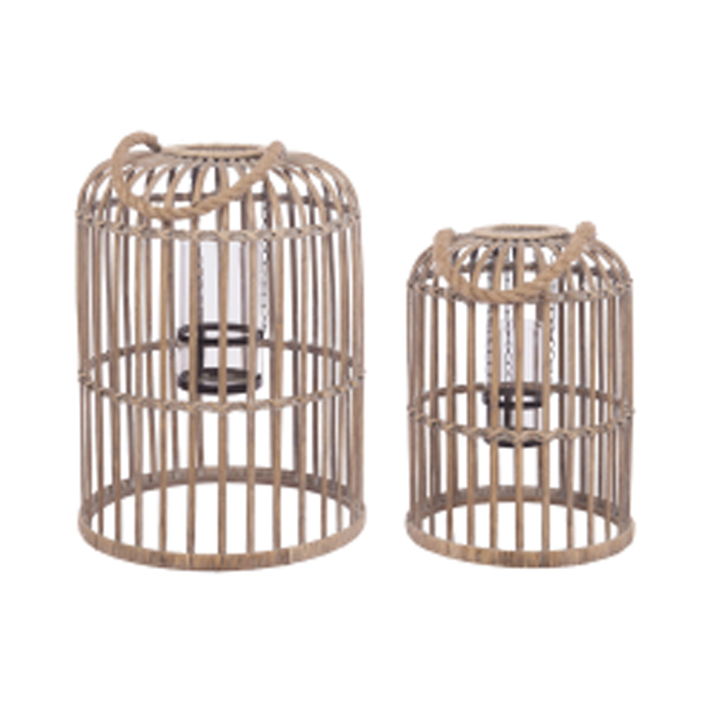 SET OF 2 WOODEN LANTERN WITH GLASS NATURAL 36X36X48CM
