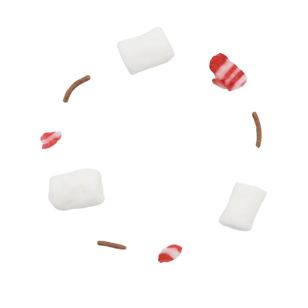 - 3 x tubs of toppings with white mini marshmallows, crushed candy canes and chocolate sprinkles
