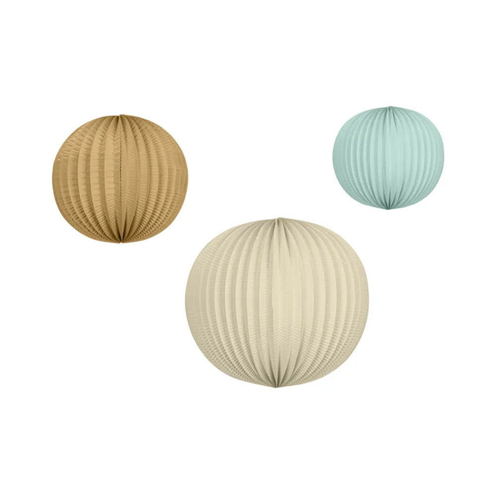 Set of paper lanterns in light blue, brown, cream colors, size 19, 23, 31cm, 3 pieces.