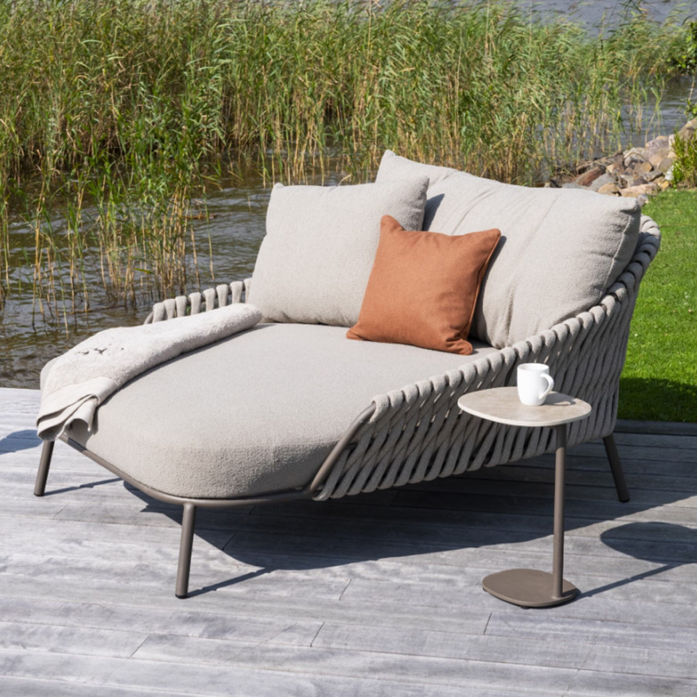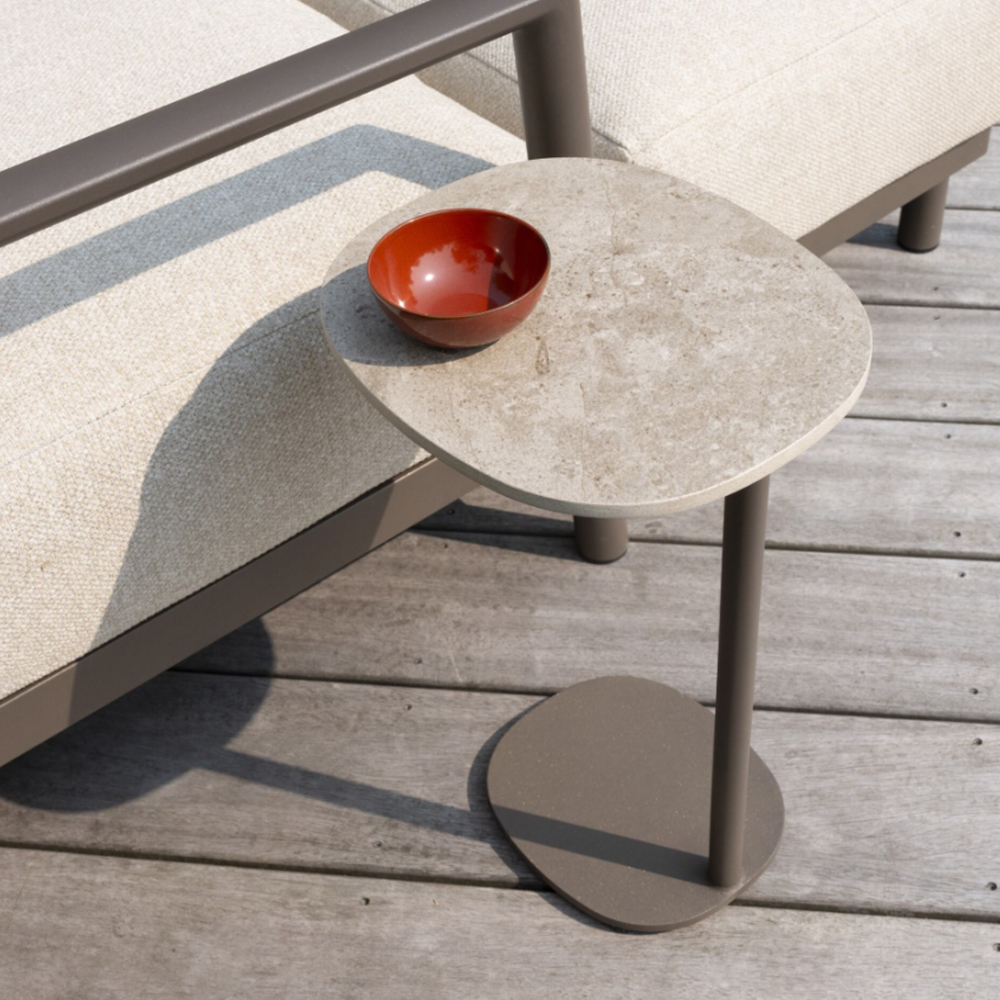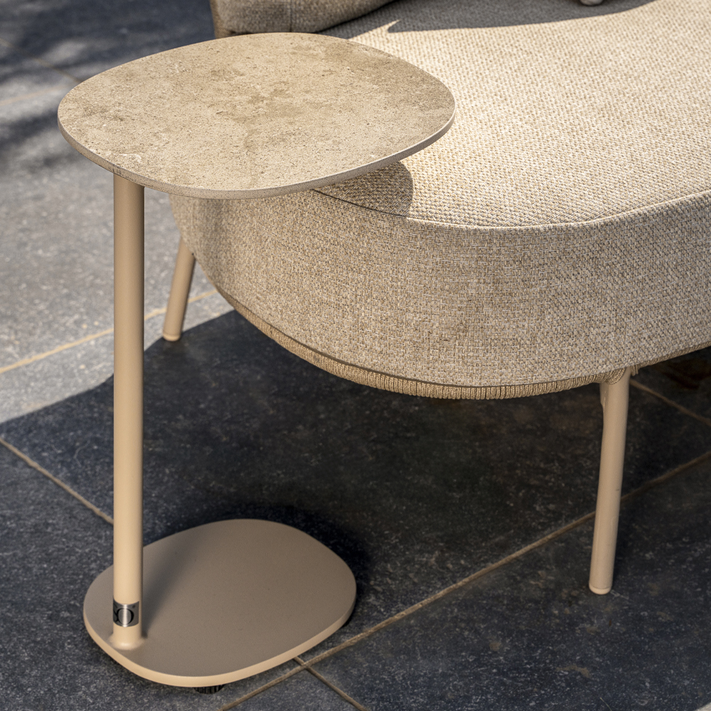 The Sofie coffee table series combines a terracotta-colored stable base with a rounded ceramic tabletop. Robust, practical, and perfectly suited to match one of the beautiful lounge sets that our collection boasts.