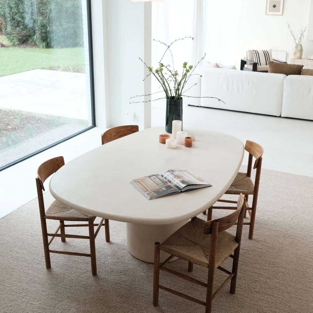 GEELONG DINING TABLE 180X120X75CM LATTE ROUND EDGE STONESKIN