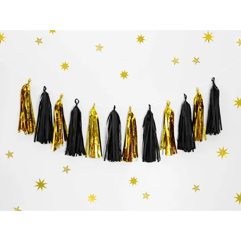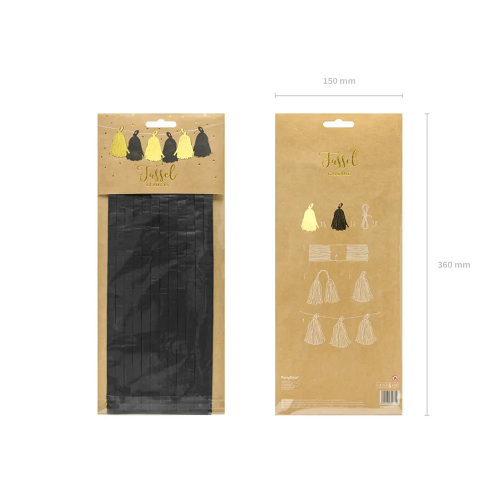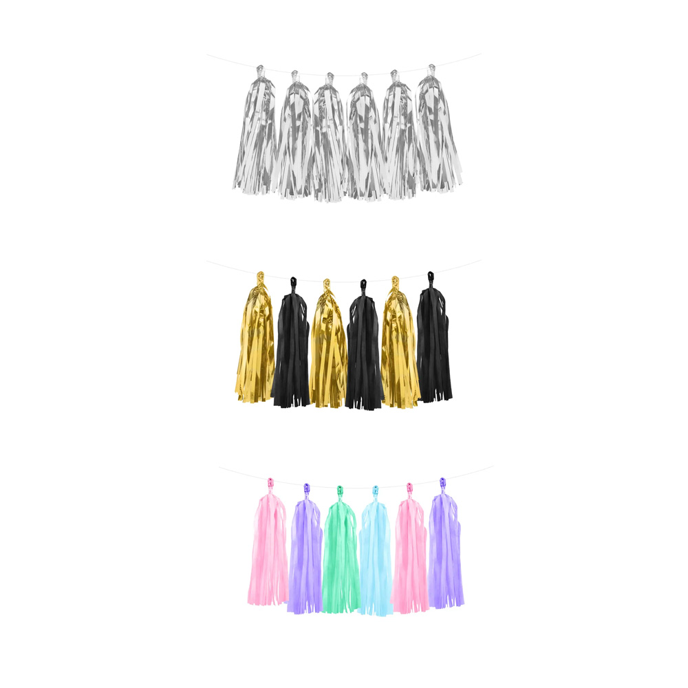 Tassel garland, do it yourself, set contains 12 tassels (pink, sky-blue, green, violet, 3 pcs each) and approx. 2 m of white twine, sizes after assembling: height approx. 30 cm, length approx. 1.5 m.