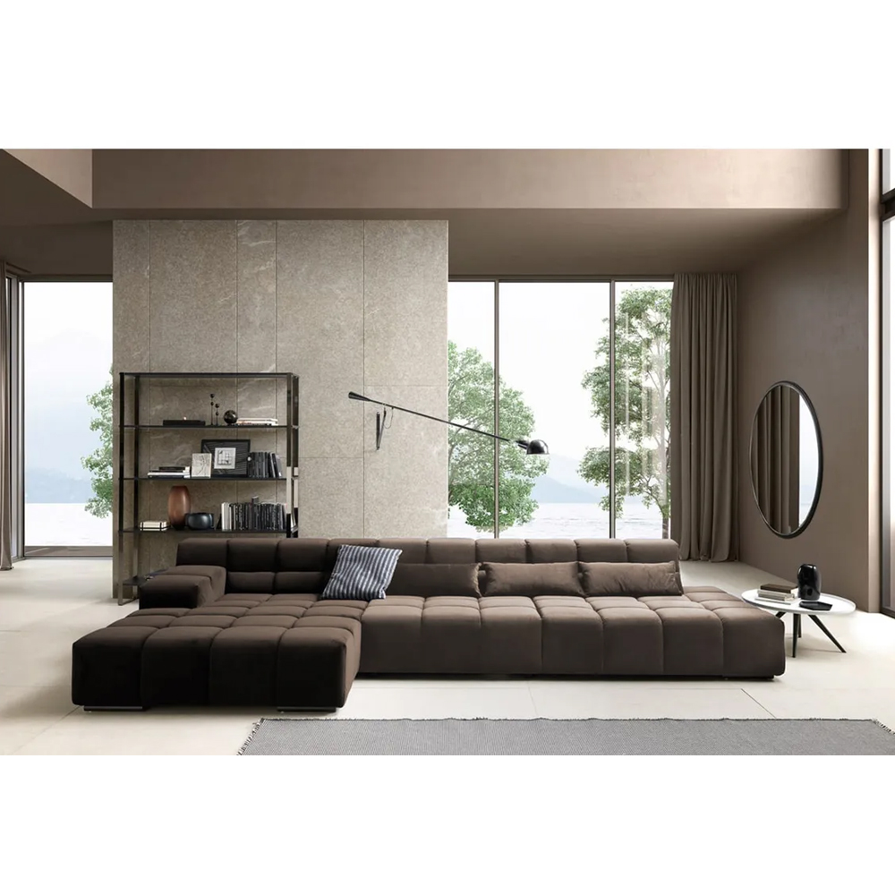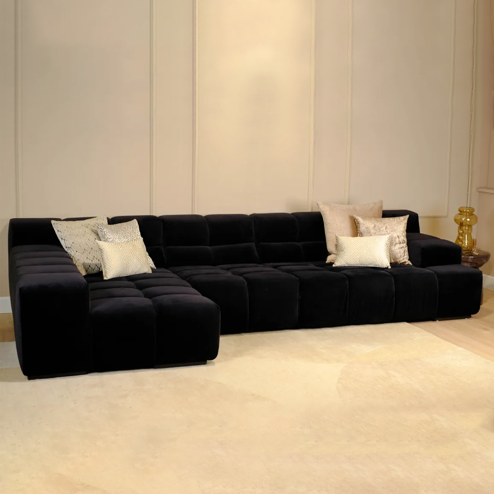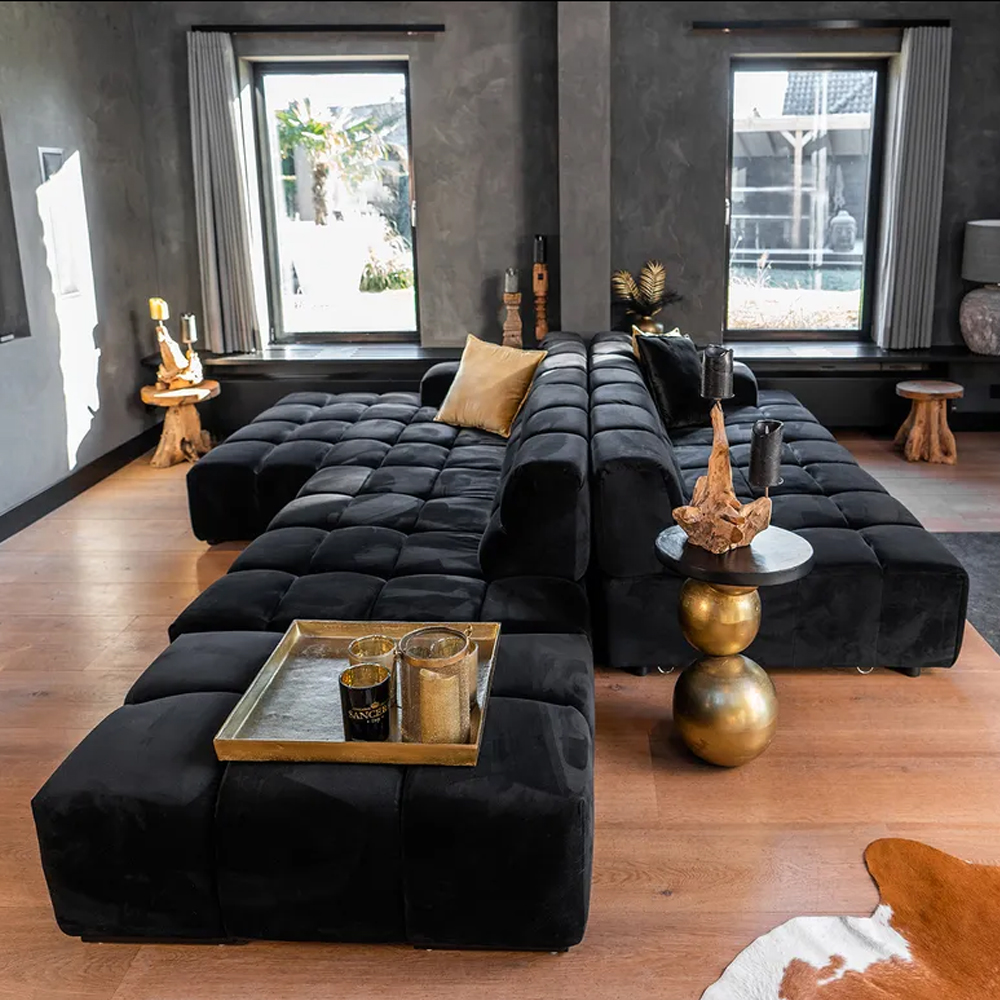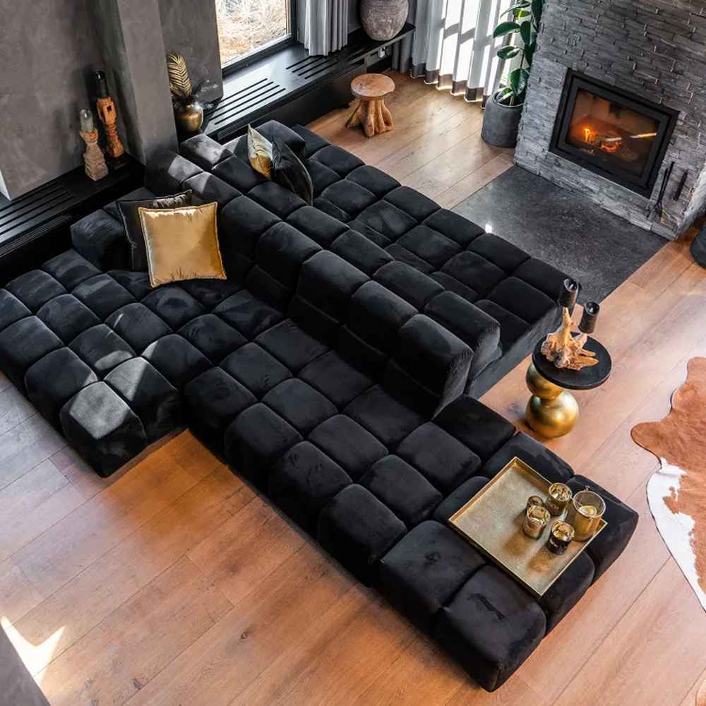 The flexible beauty: A temple of coziness. The Temple’s alluring character is inspired by both the Chester-field and Capitonne styles, influenced by the 60s and 70s. That era’s signature reveals itself in the free, informal style of the sofa, which can be individually configured: conventionally, with a relaxing chaise longue, as a corner sofa or as a free-standing oasis of well-being.