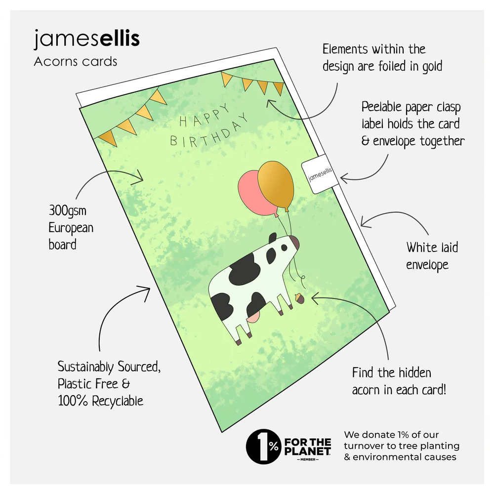The text on the front of the card reads ‘Happy Birthday’ and is also foiled in gold.