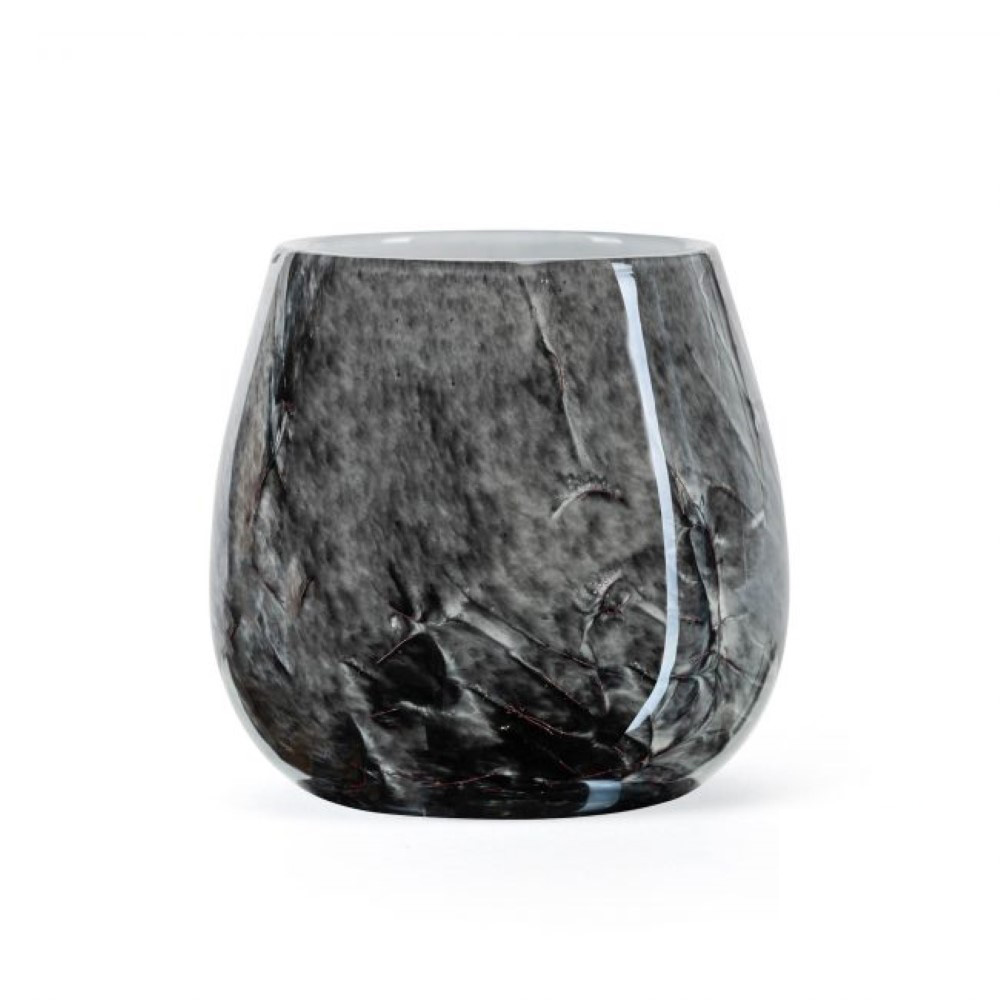 GLASS TEALIGHT HOLDER NERO BLACK & GREY 9X7CM