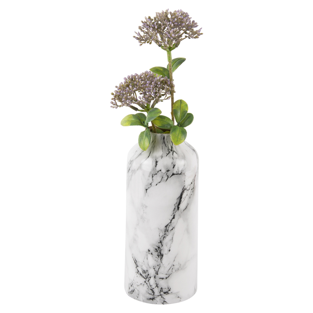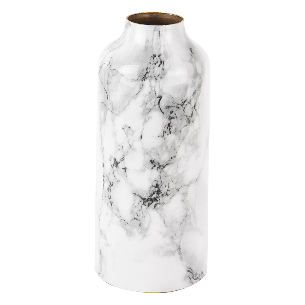 VASE MARBLE LOOK STRAIGHT IRON WHITE 9X20X9CM