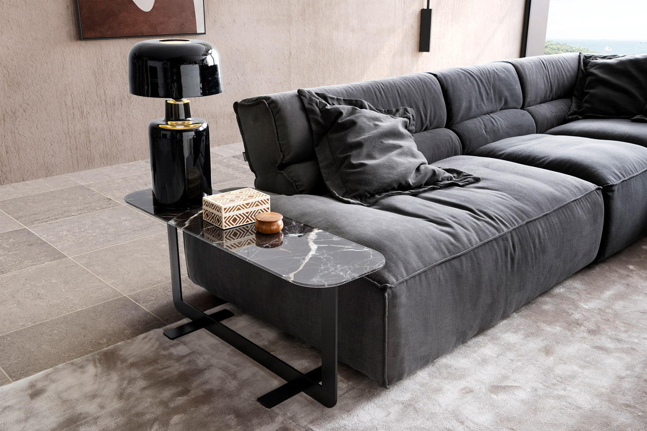 Tantalizingly charming: You can’t help but love Vola. Wide seats paired with wing-like armrests provide an elegant finish, giving the sofa a level of flamboyance. Finished with exquisite fabrics or high-quality leather and decorative reverse stitching, this sofa will bring new accents to your living room. Color-coordinated accessories complete a harmonious look.