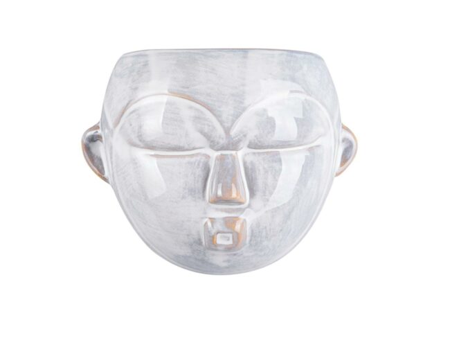 WALL PLANTPOT MASK ROUND GLAZED WHITE 18,1 x 14,5 x 7,8CM