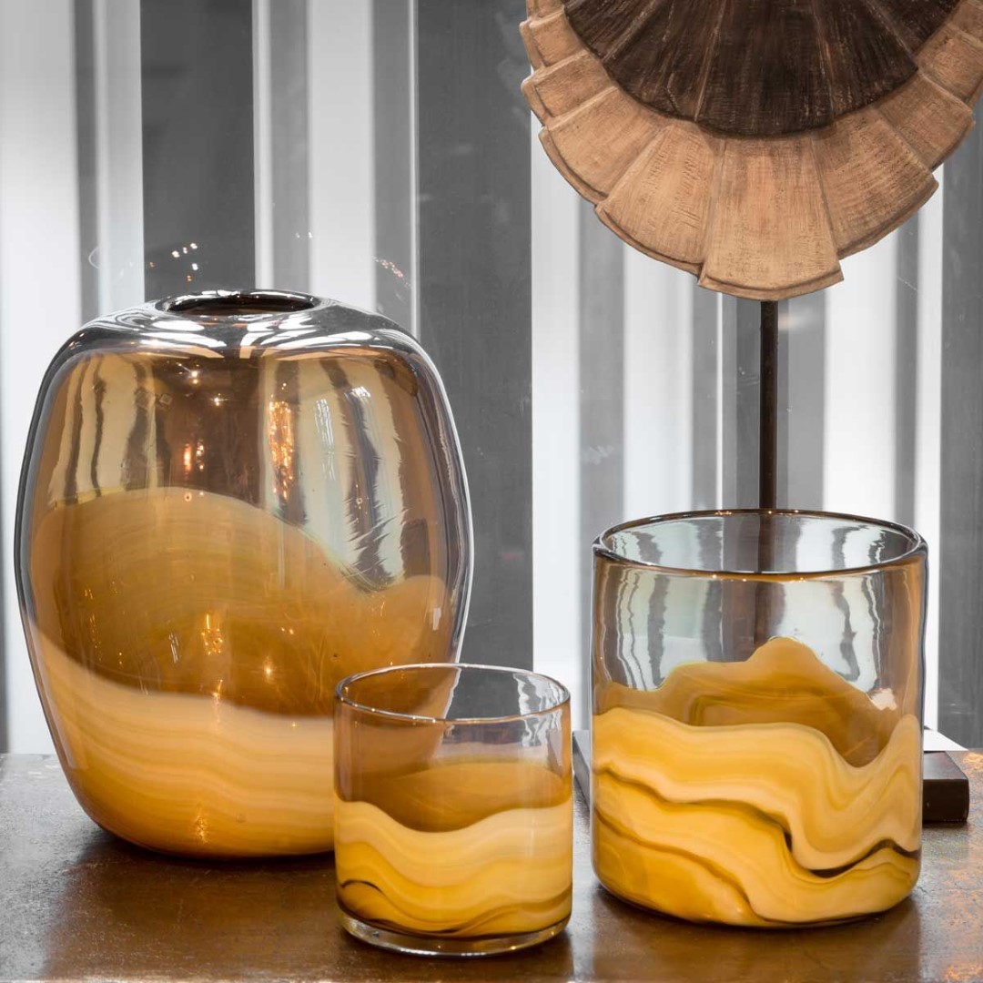 Make your guests jealous with this series, consisting of a vase and two hurricanes.