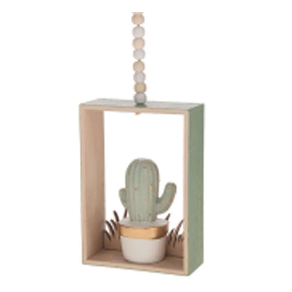 WOODEN HANGING FRAME/CACTUS GREEN 33X10X4CM